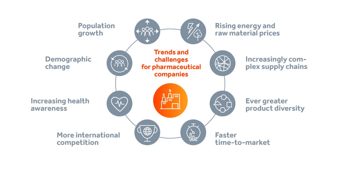 Die Pharma- und Healthcare-Branche zählt zu den größten und dynamischsten Wachstumsmärkten weltweit. Das hat unterschiedliche Gründe, etwa eine rapide wachsende Weltbevölkerung und der demografische Wandel hin zu immer älteren Gesellschaften. Dadurch steigt die Nachfrage nach Medikamenten und anderen pharmazeutischen Produkten. Für die meisten Pharmahersteller ist das Marktumfeld jedoch auch deutlich volatiler geworden – bedingt durch zunehmenden internationalen Wettbewerb, neue Therapie- und Darreichungsformen sowie den Trend zu mehr Individualisierung. Darüber hinaus sinkt die sogenannte Time-to-Market, das heißt: Immer mehr Produkte kommen in immer kürzerer Zeit auf den Markt.
