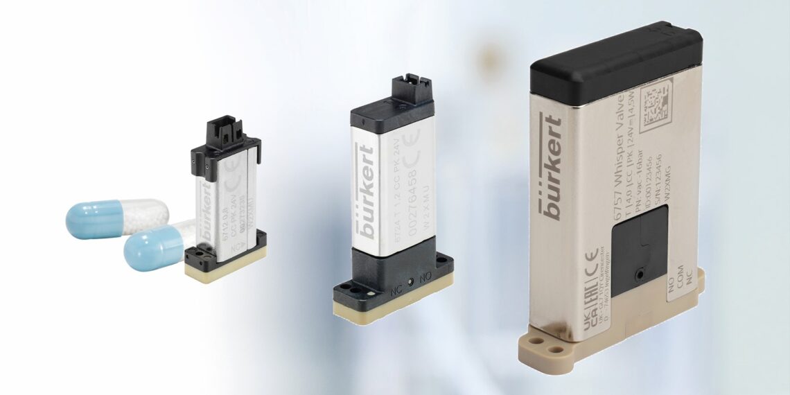 Bürkert Fluid Controls Systems hat deshalb die WhisperValve-Baureihe nach oben erweitert: Das neue Analyseventil Typ 6757 deckt nun den Druckbereich bis 16 bar ab und ist gegen Druckstöße unempfindlich. Zudem ermöglicht sein Design Schaltzeiten unter 8 Millisekunden bei einer Leistungsaufnahme von weniger als 4,5 Watt und eignet sich dadurch auch für batteriebetriebene Feldgeräte. Die medienberührenden Komponenten werden entsprechend der jeweiligen Fluide ausgewählt. Daher eignet sich das Ventil auch für kritische Reagenzien oder Reinigungsmittel und widersteht für bis zu 30 min 90 Grad Celsius Medientemperatur, zum Beispiel bei Sterilisationsprozessen. Das gilt auch für die kleineren Mitglieder der WhisperValve-Familie Typ 6712 und 6724, die für Systemdrücke bis 7 bar ausgelegt sind. Damit ergibt sich ein breiter Anwendungsbereich, angefangen von mobilen und stationären Mess- und Analysegeräten in der Medizin- und Labortechnik über Systeme zur Endoskopreinigung oder Abfüllanlagen bis hin zu Desinfektionsgeräten.