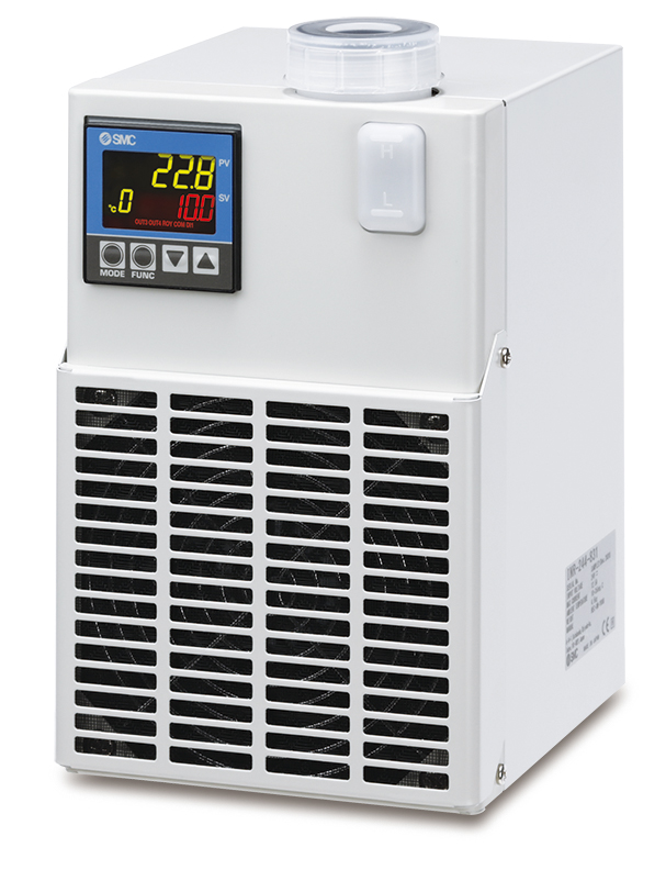 Mit der Serie INR-244–831 bietet Smc ein Kühl- und Temperiergerät für zirkulierende Umlaufmedien, das energie- und ressourceneffizient arbeitet und sich an viele Anwendungen anpassen lässt. Bei kompakten Abmessungen von nur B130 × T150 × H210 Millimeter und seinem geringem Gewicht kann das Kraftpaket komfortabel in beengte Anlagen direkt an der Maschine oder auf Arbeitstischen von Anwendern installiert werden. Hier spielt die Serie INR-244–831 ihren Vorteil der geräuscharmen Gerätekonstruktion voll aus: Selbst bei hoher Leistung hat das Gerät einen niedrigen Geräuschpegel in Höhe von lediglich 58 Dezibel, optional mit einem zusätzlichen geräuscharmen Gebläse ausgestattet sogar von nur 45 Dezibel. In der kältemittelfreien Peltierausführung erlaubt die Serie INR-244–831 zudem einen wartungsarmen und umweltfreundlichen Betrieb.