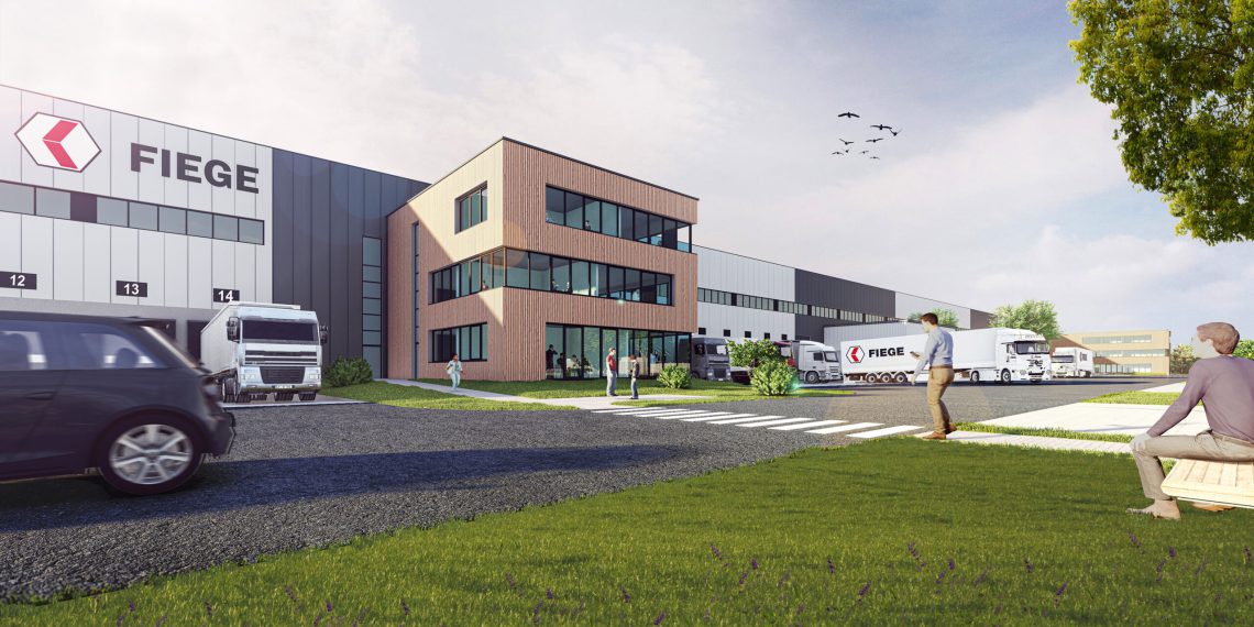 In Bar­leben nördlich von Magde­burg baut das Fam­i­lienun­ternehmen Fiege aus dem west­fälis­chen Greven auf einem rund 90.000 Quadrat­meter großen Are­al einen hochmod­er­nen Mul­ti-User-Stan­dort für den Geschäfts­bere­ich Health­care. Ins­ge­samt entste­hen in Bar­leben 42.000 Quadrat­meter Logis­tik­fläche, verteilt auf vier Hal­len­schiffe, zwei Küh­llager und zwei vorge­lagerte Bürokom­plexe. Die Fer­tig­stel­lung des neuen Fiege-Stan­dortes ist für Ende 2022 geplant. Real­isiert wird das Baupro­jekt vom Fiege-Geschäfts­bere­ich Real Estate, dem Gen­er­alun­ternehmer Bre­mer und dem Architek­tur­büro Jür­gen Schlake.