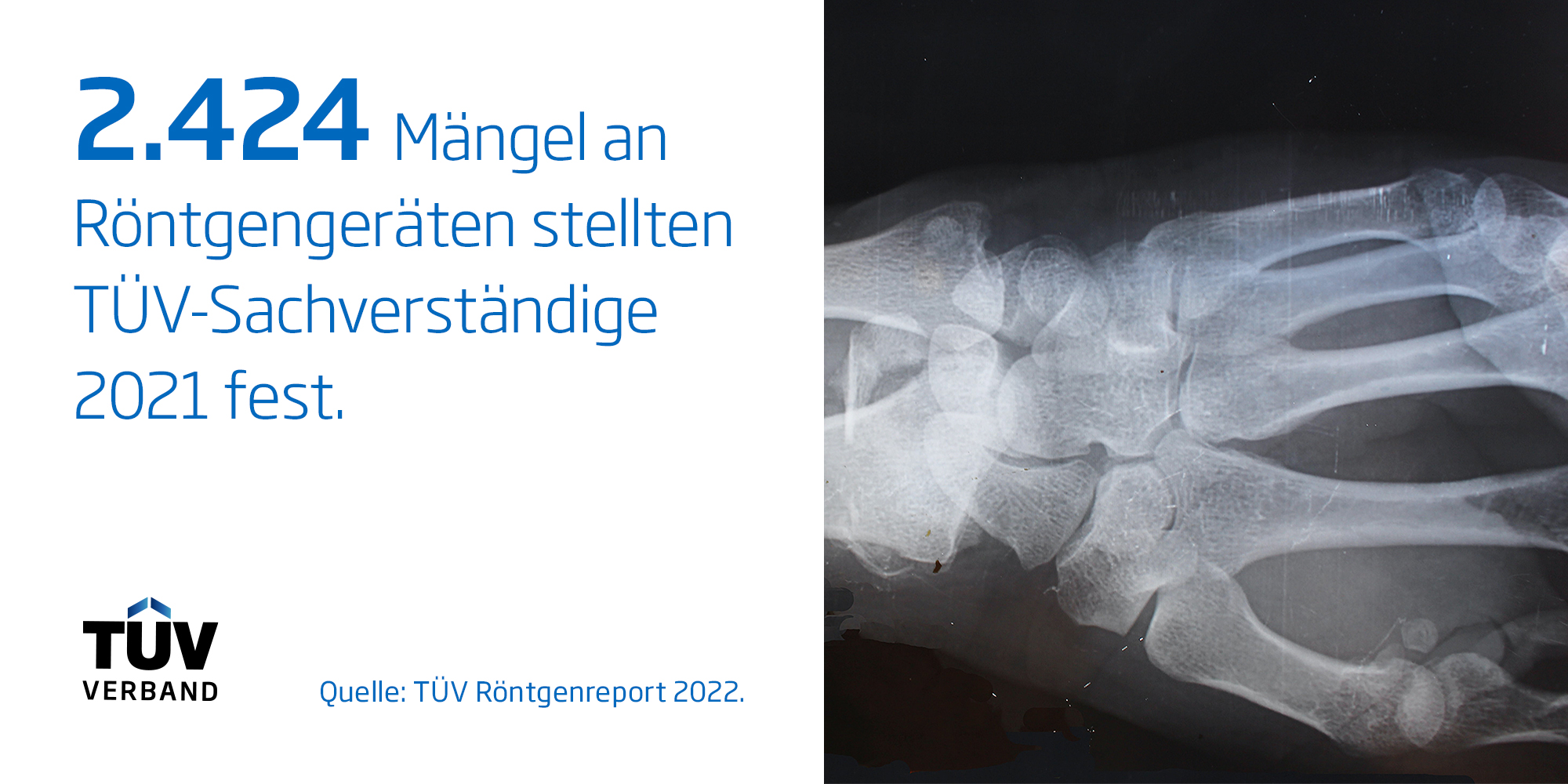 Beim Betrieb von Rönt­gengeräten in Kliniken, orthopädis­chen Prax­en oder bei Zahnärzt:innen beste­ht in vie­len Fällen Nachbesserungs­be­darf bei der Qual­itätssicherung und beim Strahlen­schutz. Im Jahr 2021 sind bei den geset­zlich vorgeschriebe­nen Sicher­heit­sprü­fun­gen an 15.841 unter­sucht­en Rönt­gengeräten von den TÜV-Sachver­ständi­gen ins­ge­samt 2.424 Män­gel ent­deckt wor­den. Das ist ein Ergeb­nis des „TÜV Rönt­gen­re­ports 2022“.
