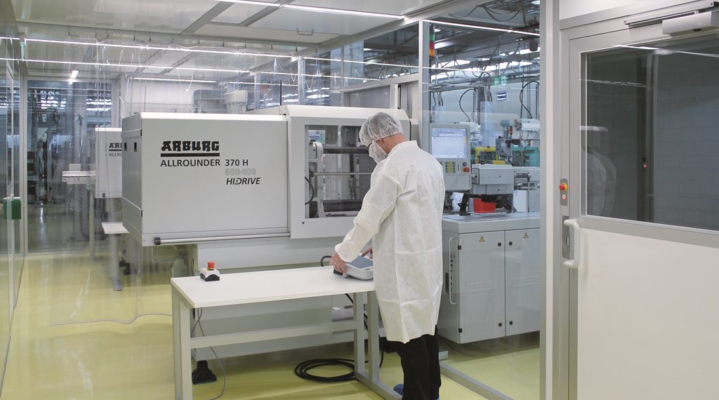 Je klein­er die Pro­duk­te, desto kom­plex­er und sorgfältiger muss der Her­stel­lung­sprozess erfol­gen. Jedes Staubko­rn kann zu ein­er Funk­tions­beein­träch­ti­gung oder gar zu einem Aus­fall führen. Wer­den die Pro­duk­te zudem im medi­z­inalen Bere­ich, wie beispiel­sweise in der min­i­ma­l­in­va­siv­en Chirurgie, einge­set­zt, muss absolute Hygiene und eine kon­t­a­m­i­na­tions­freie Aus­liefer­ung gewährleis­tet wer­den. Dabei spie­len die Ein­hal­tung von kon­stan­ten Umge­bungs­be­din­gun­gen während der Pro­duk­tion und Ver­pack­ung eine große Rolle. Die Stamm AG betreibt seit vie­len Jahren den Mikrospritz­guss von medi­z­in­tech­nis­chen Bauteilen unter kon­trol­lierten Rein­raumbe­din­gun­gen. Die Schweiz­er Fir­ma hat in neun Mikrospritzgieß­maschi­nen investiert und ihre Rein­raumka­paz­ität jet­zt um einen weit­eren Rein­raum der Rein­raumk­lasse ISO 7 erweitert.