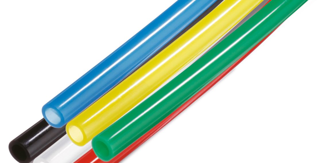 So umfasst das Sortiment der Serie TU-X214 insgesamt fünf verschiedene Größen mit einem Außendurchmesser von 4, 6, 8, 10 und 12 Millimetern. Als Besonderheit bietet SMC die PU-Schläuche in acht verschiedenen Farben an: Neben den drei transluzenten (lichtdurchlässigen) Farben Rot, Blau und Farblos (klar beziehungsweise Materialfarbe) sind dies die fünf opaquen (lichtundurchlässigen) Farben Weiß, Schwarz, Gelb, Grün und Orange. Dadurch lassen sich zum einen auch sehr komplexe Verschlauchungen mittels einfacher Farbcodierung besonders übersichtlich gestalten – die Zuordnung einer Verbindung gelingt so bereits auf den ersten Blick, was die Gefahr möglicher Verwechslungen seitens der Anwender reduziert (Poka Yoke). Zum anderen ermöglichen die transzulenten Farben den Einblick ins Innere der in 20 Meter Länge erhältlichen Schläuche, wodurch eine einfache Überprüfung und Problemerkennung möglich ist. Ausgelegt sind sie für einen Maximaldruck von 0,8 Megapascal (Betriebstemperatur von 20 Grad Celsius) und einen Temperatureinsatzbereich von ‑20 bis +60 Grad Celsius (Druckluft) beziehungsweise 0 bis 40 Grad Celsius (Wasser – nicht gefroren). Sie decken damit ein breites Anwendungsspektrum ab.