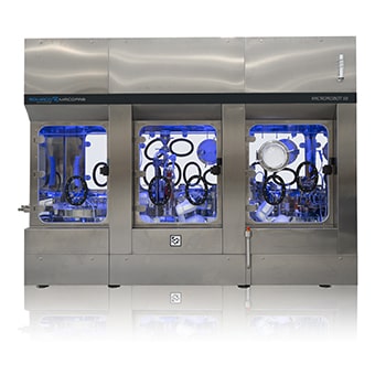 Die MicroRobot 50, eine robotische Mikrodosiermaschine, von Romaco Macofar wurde speziell für