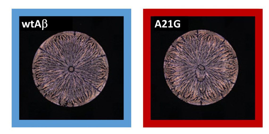 Neuronale Netzwerke erkennen kleinste Unterschiede in den Trocknungsmustern von Peptid-Lösungen (links: Amyloid-beta-(Aβ42)-Peptid, rechts: Mutation).