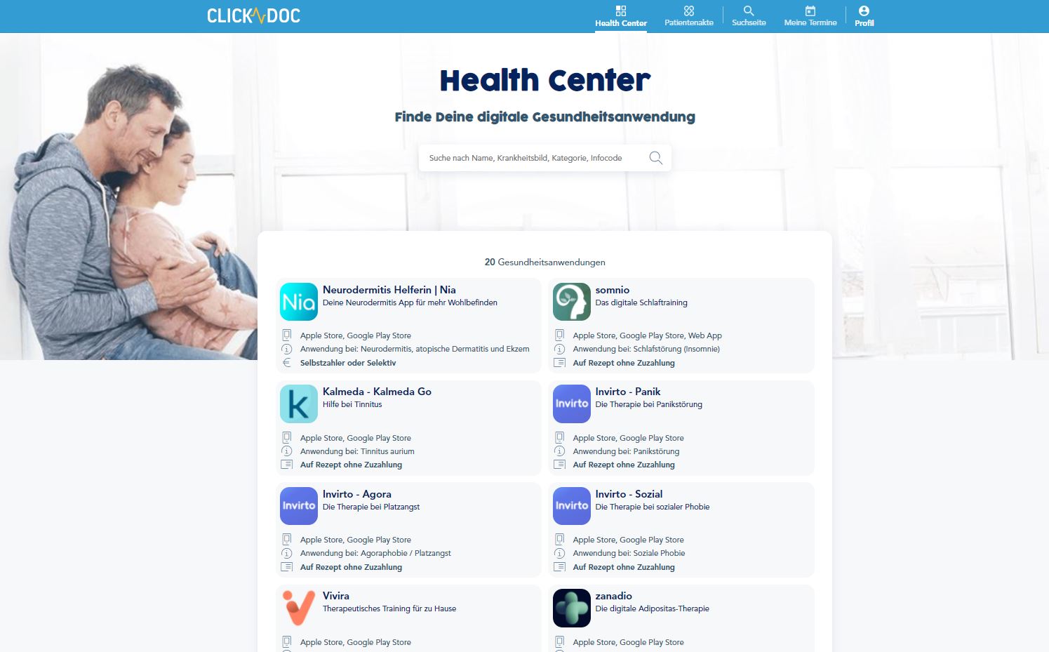 Seit dem 28. Jan­u­ar 2021 ist die App Teil des CGM LIFE Part­ner­pro­gramms. Ärztin­nen und Ärzte kön­nen die Anwen­dung direkt aus ihrem Arzt­in­for­ma­tion­ssys­tem (CGM TURBOMED, CGM MEDISTAR, CGM ALBIS oder CGM M1 PRO) empfehlen. Mit dem APP VERORDNUNGSCENTER stellt Com­pu­Group Med­ical allen Entwick­lern von Gesund­heits-Apps eine Plat­tform zur Ver­fü­gung, um deren Anwen­dun­gen nach­haltig in die Ver­sorgungs­land­schaft zu inte­gri­eren. Patien­ten kön­nen sich außer­dem im Health Cen­ter auf www.clickdoc.de über alle teil­nehmenden Apps informieren und diese herunterladen.