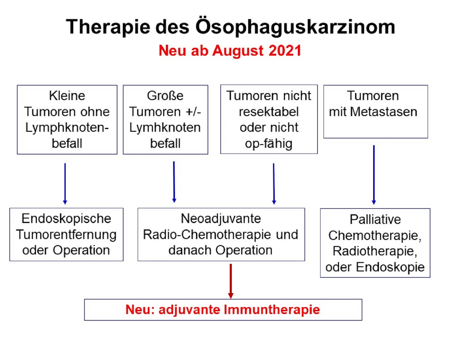 Bei Patien­ten mit Kreb­serkrankun­gen der Speis­eröhre (Ösoph­a­gus) und des oberen Magens bildet sich nicht sel­ten bere­its kurz nach inten­siv­er Behand­lung des erst­mals aufge­taucht­en Tumors ein Rezidiv, also eine erneute Kreb­serkrankung. Bis­lang bestand die Stan­dard­be­hand­lung von Patien­ten mit einem lokal fort­geschrit­te­nen Speis­eröhren- oder oberen Magen-Karzi­nom aus der Kom­bi­na­tion ein­er soge­nan­nten neoad­ju­van­ten, also vor­bere­i­t­en­den, Chemo- und Bestrahlungs­ther­a­pie und ein­er sich daran anschließen­den oper­a­tiv­en Ent­fer­nung des Tumors. Mit dieser Ther­a­piekom­bi­na­tion ist es jedoch nicht gelun­gen, das Risiko eines Rezidi­vs für län­gere Zeit zu verringern.