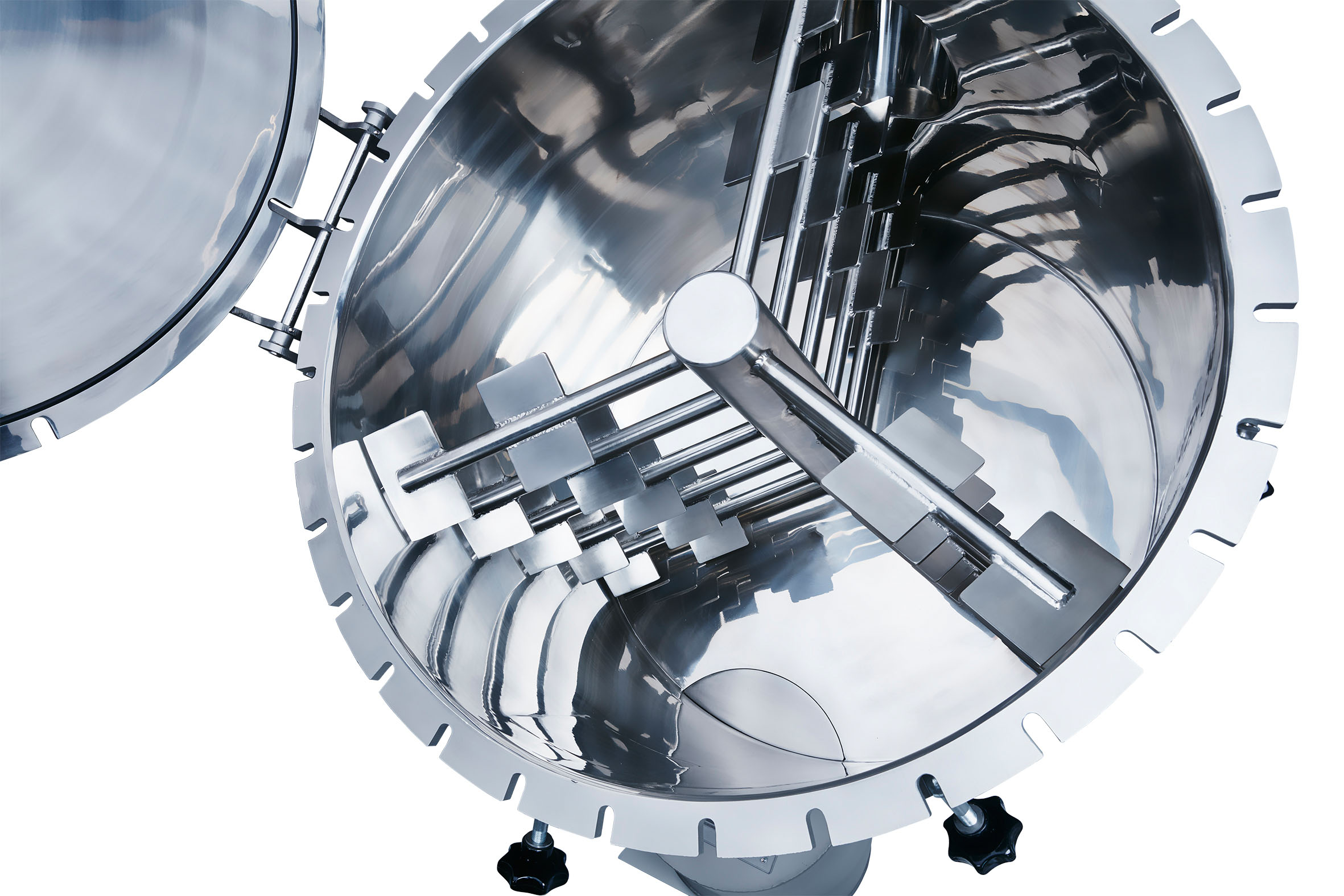 Der neue mechanische Schüttgutmischer MIX-A-LOT ermöglicht eine besonders effiziente, schnelle und produktschonende Homogenisierung des Füllguts. Der gut zugängliche und leicht zu reinigende Mischer ist in drei Baugrößen für Durchsätze bis zu 5 t/h sowie auch als ATEX-Ausführung verfügbar. Optional kann die Oberfläche der Mischkammer elektropoliert werden. Die Kombination aus sehr guter Mischwirkung und kürzester Mischzeit basiert auf der optimierten Ausführung des rotierenden Mischwerkzeugs. Dessen geringe Umfangsgeschwindigkeiten und die optimale Anpassung des Spalts zum Gehäuse ermöglichen dabei ein produktschonendes Arbeiten ohne Kornzerstörung oder Produkterwärmung. Für die gute Zugänglichkeit des gesamten Prozessraums sorgt die große frontale Inspektionstür des MIX-A-LOT. Eine zusätzliche Eingriffsöffnung an der Auslaufklappe erleichtert die Inspektion und Reinigung auch dieses Bereichs.