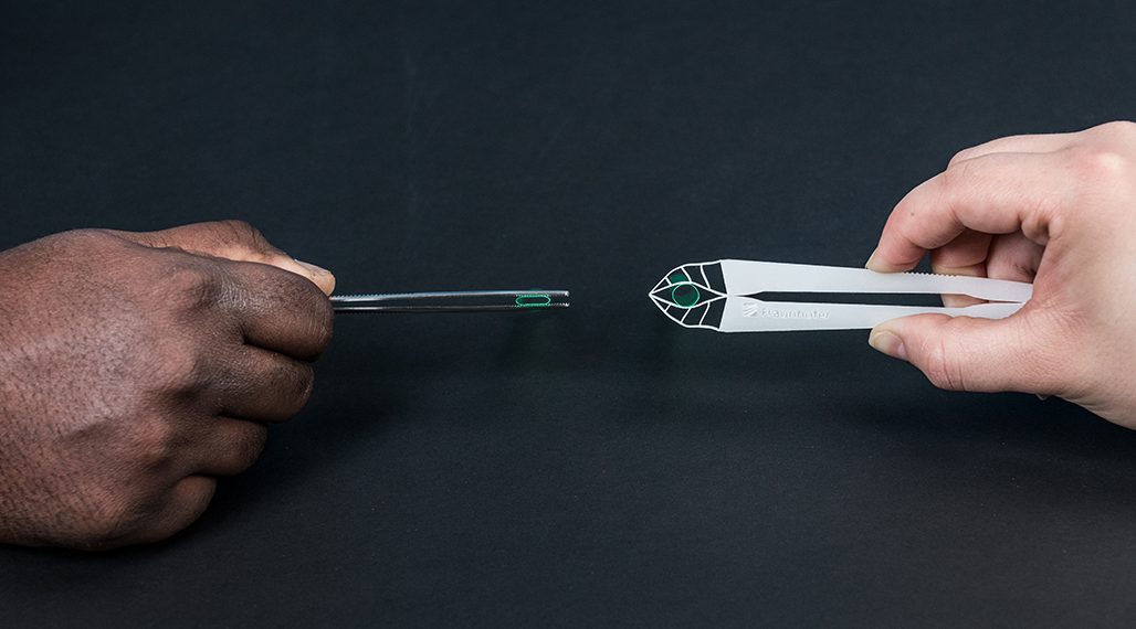 Das Geheimnis steckt im Design. In monatelanger Tüftelarbeit haben die Forscher am Computer unterschiedliche Modelle entwickelt. »Unser Ziel war es, die Pinzette so zu gestalten, dass sie gut in der Hand liegt, die gewünschte Adaption an die Oberfläche garantiert und dass sie sich sowohl kostengünstig als auch nachhaltig produzieren lässt«, berichtet Schwarz.