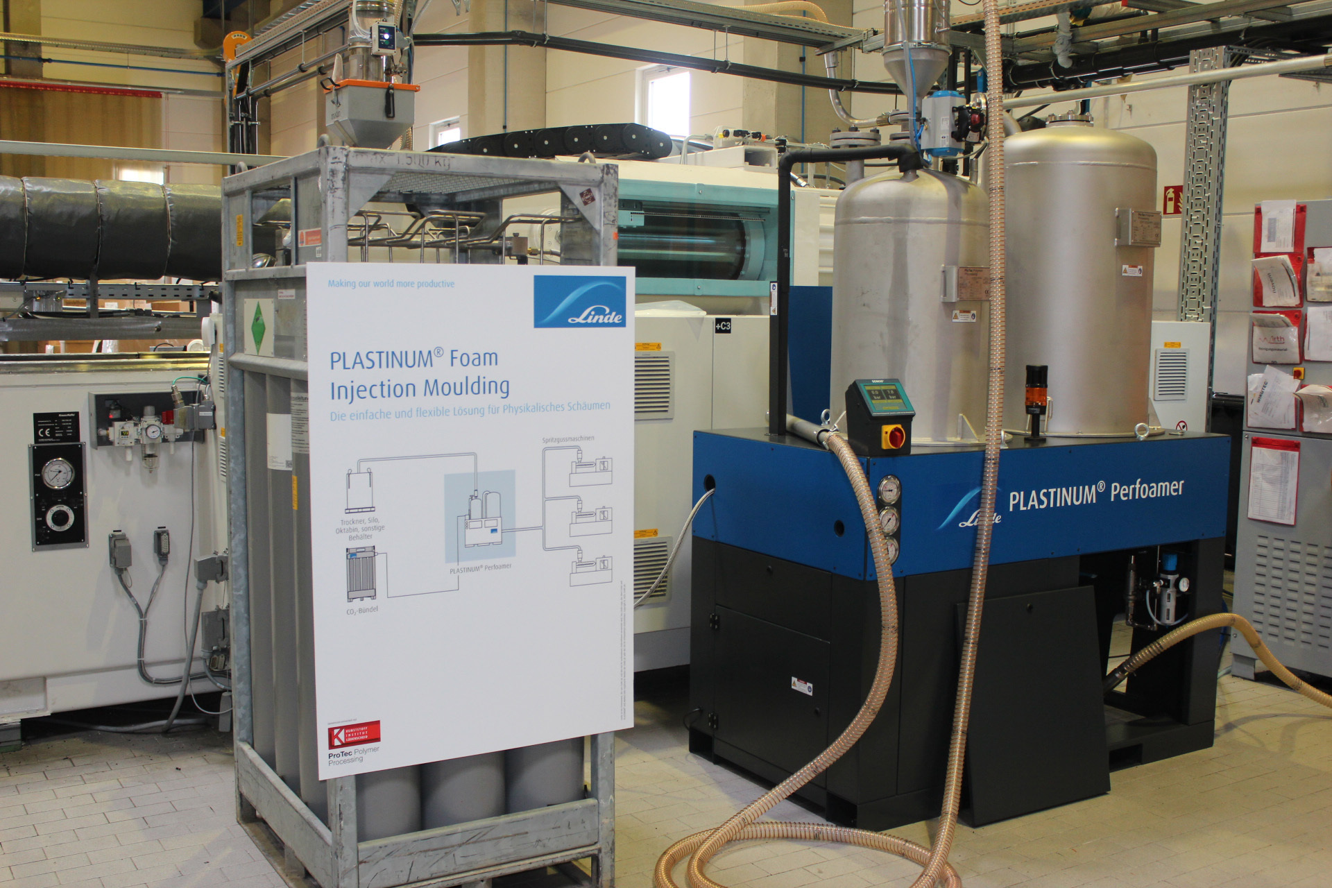 Im Zuge der aktuellen Koop­er­a­tion stellt Linde Wirth einen Per­foamer der neuesten Gen­er­a­tion zur Ver­fü­gung. Zusam­men mit dem Kun­st­stoff-Insti­tut Lüden­scheid (KIMW) und Pro­Tec als weit­eren Entwick­lungspart­nern wer­den das Gerät und das Ver­fahren seit­dem unter Labor- wie unter Prax­is­be­din­gun­gen getestet. Im Ergeb­nis zeigt sich, dass das Ver­fahren tat­säch­lich eine überzeu­gende Alter­na­tive zu herkömm­lichen physikalis­chen Schaumver­fahren darstellt.