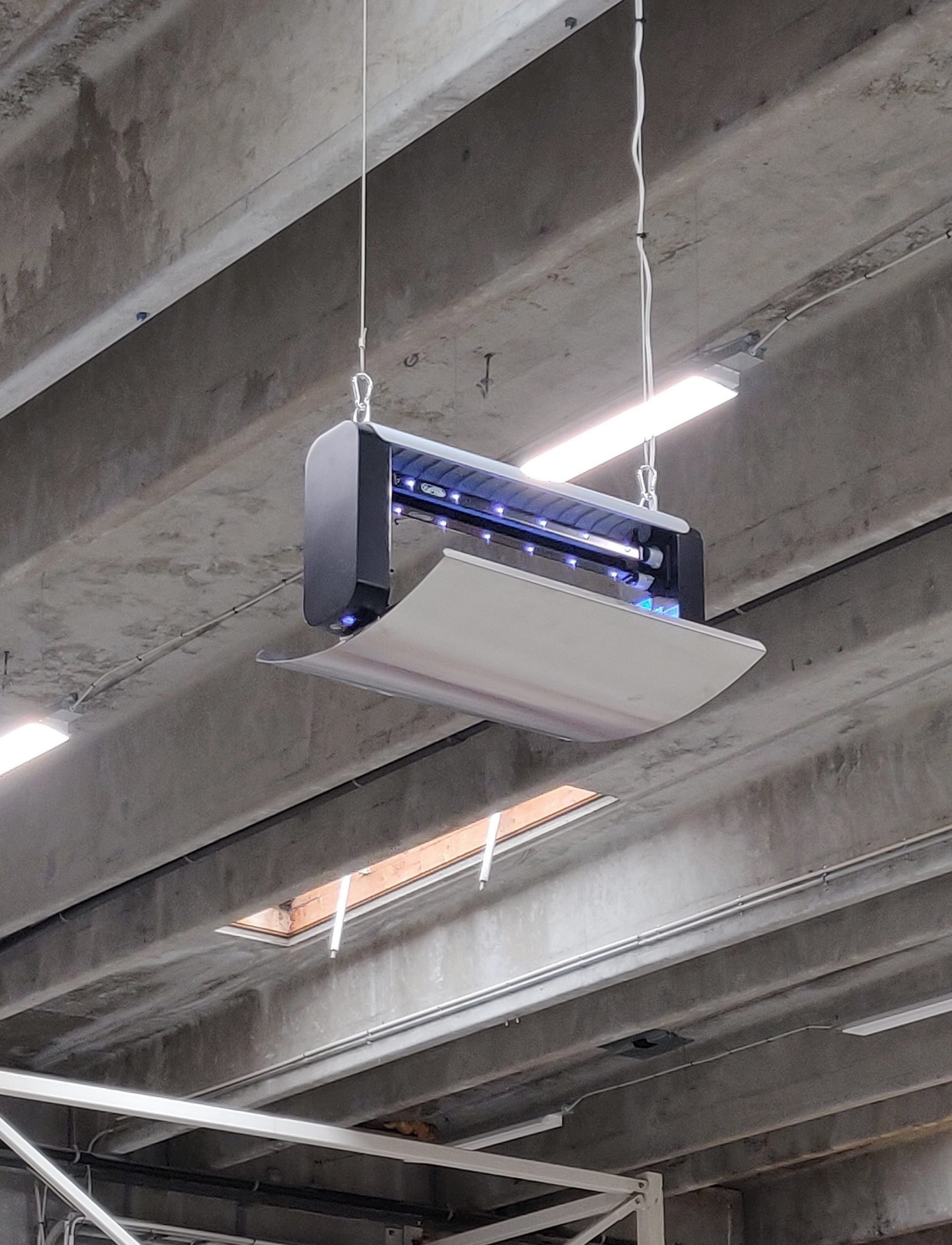 Es handelt sich um eine offene, an der Decke hängende Lösung, die eine multidirektionale UV-LED-Anziehung und somit einen großen Aktionsradius ermöglicht. Eingesetzt wird es zum Beispiel in der Lebensmittelverarbeitung, der Pharma-Industrie oder anderen industriellen Produktions- und Lagereinrichtungen.