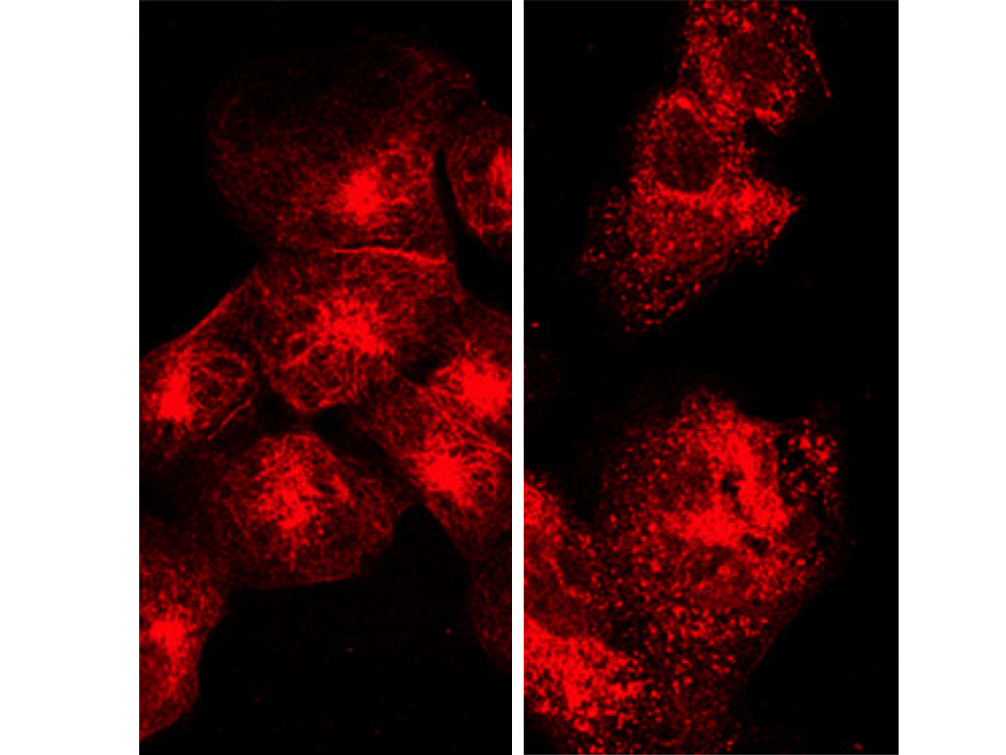 Zum anderen hat die Arbeitsgruppe zusammen mit Kooperationspartnern eine weitere bisher unbekannte Verbindung gefunden, die ähnlich effektiv wie die HDAC-Inhibitoren, die Aktivität des MYB-Proteins hemmt. Das Besondere bei dieser als „Bcr-TMP“ bezeichneten Verbindung ist, dass sie zusätzlich auch die Funktion der sogenannten Mikrotubuli hemmt. Mikrotubuli bilden ein Netzwerk von dynamisch auf- und abbaubaren, dünnen, fadenförmigen Zellstrukturen (Proteinfilamenten) innerhalb der Zelle, welches unter anderem für die Zellteilung benötigt wird. Inhibitoren, die dieses Netzwerk zerstören, sind schon länger bekannt und werden aufgrund ihrer Fähigkeit, die Zellteilung und damit die Vermehrung von Zellen zu hemmen, bereits seit vielen Jahren in der Krebstherapie eingesetzt. Das Besondere dieses neuen Inhibitors ist – so vermuten Klempnauer und Kollegen –, dass er in AML-Zellen gleichzeitig zwei unterschiedliche, für die Vermehrung der Zellen wichtige Prozesse attackiert: zum einen die Regulation von Genen durch den Transkriptionsfaktor MYB und zum anderen den Prozess der Zellteilung [2].