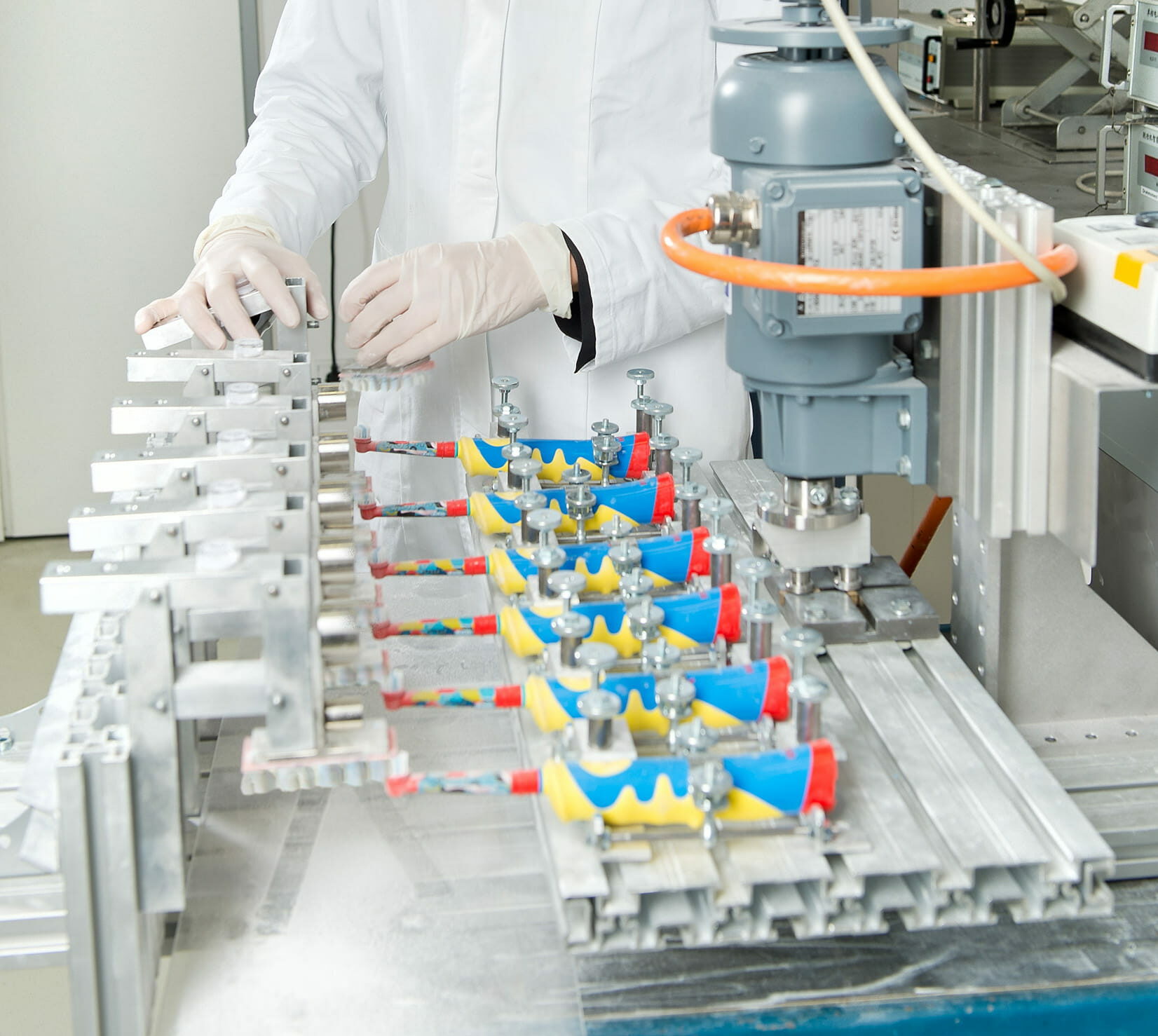 Für diese Überprüfungen ist ein umfangreiches Testszenario festgelegt. Bereits seit 2017 ist ein eigens entwickelter Putzroboter im Einsatz, der die Putzleistung auf schwarz eingefärbten künstlichen Gebissen simuliert. Eine weiße Paste stellt Beläge und Verunreinigungen dar, die von den getesteten Modellen entfernt werden sollen. Wie gut das gelingt, analysiert eine Software, die bei ihrer Auswertung für die Kriterien Zahnzwischenräume, Zahnhälse, Glattflächen und Gesamtfläche Noten vergibt. Nach diesen automatisierten Tests und selbstverständlich einem gründlichen Sicherheitscheck, in dem zum Beispiel auch Kabel und Ladestation genauer unter die Lupe genommen werden, kommen menschliche Probanden aller Altersklassen ins Spiel. Sie testen mehrere Produkte verschiedener Hersteller mit unterschiedlichen Produktmerkmalen und aus jeweils anderen Preisklassen. Erst nach diesem aufwändigen Verfahren vergibt das Unternehmen sein Prüfsiegel.