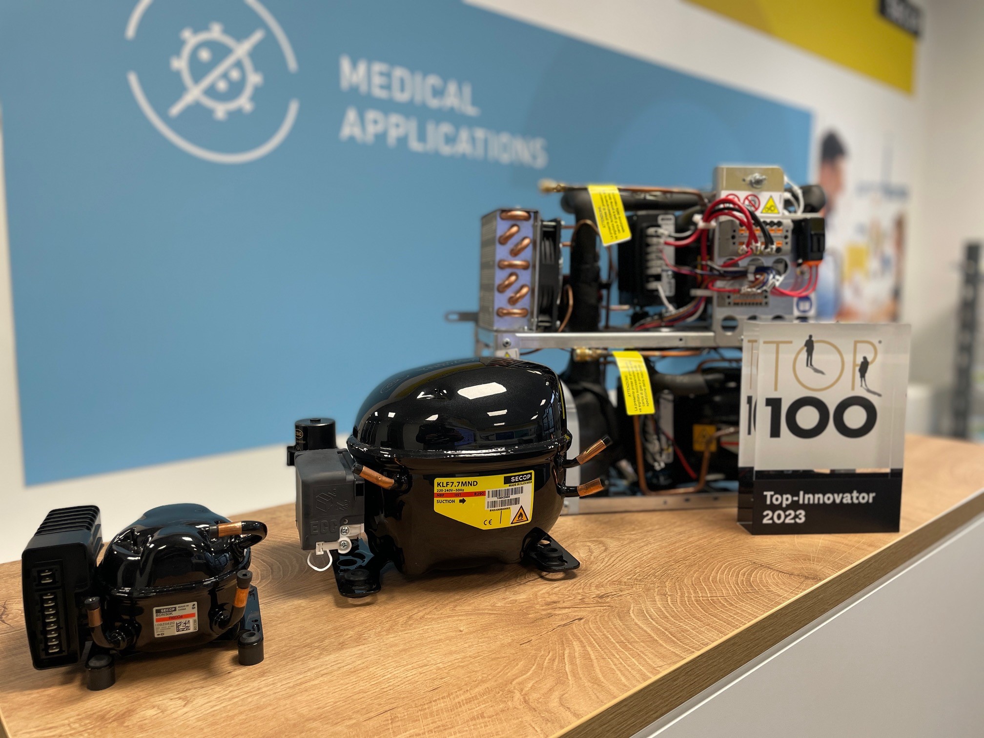 Secop hat den TOP 100 Innovator Award 2023 erhalten. Zu den innovativen Lösungen, die Secop entwickelt hat und die zu dieser Auszeichnung beigetragen haben, gehört eine Reihe von medizinischen Kühllösungen, die für die sichere Lagerung, den Transport und die Handhabung von hochsensiblen Substanzen wie Pharmazeutika, Impfstoffen, Zellen, Genen, Blut usw. optimiert sind.