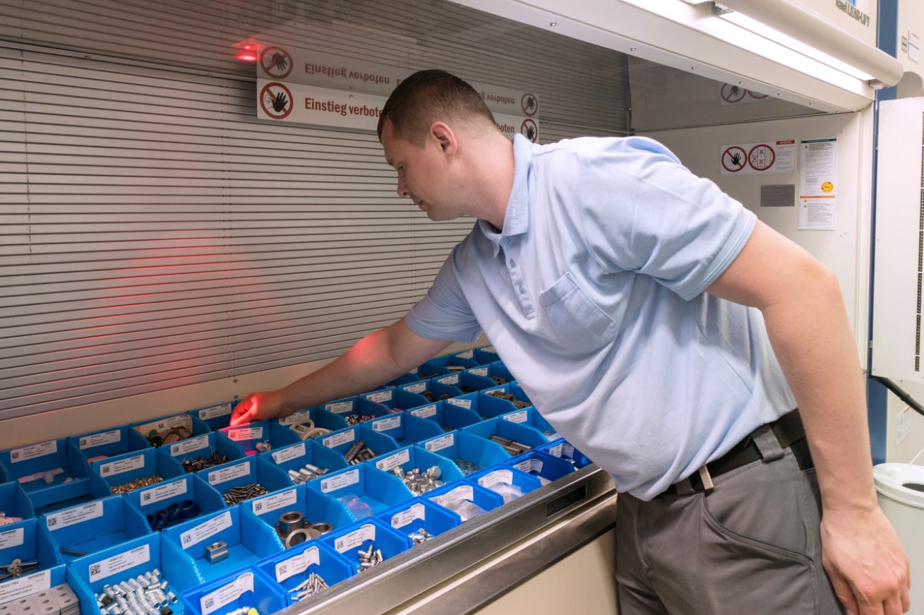 Im Produktionslager werden rund 1.000 Artikel pro Tag kommissioniert. Durch das starke Wachstum wurde die tägliche Pickrate in den letzten fünf Jahren sogar verdoppelt. Im vergangenen Jahr konnte allein durch die neuen Vertikallifte die Leistung von 800 auf 1.000 Pickvorgänge pro Tag gesteigert werden. Bernd Magirius hebt hervor: „Heute managen wir bereits 90 Prozent der Materialbewegungen mit dem Vertikalliftlager. Durch die höhenoptimierte Lagerführung bis unter die Hallendecke verdichten die Lifte enorm den Lagerraum. Das ist entscheidend, denn unser Sortiment hat sich durch neue Artikel gewaltig vergrößert, und der Lagerbestand in den letzten beiden Jahren sogar verdoppelt! Für eine sichere Bestandsverwaltung sind die neuen Hänel Lifte also unentbehrlich.“