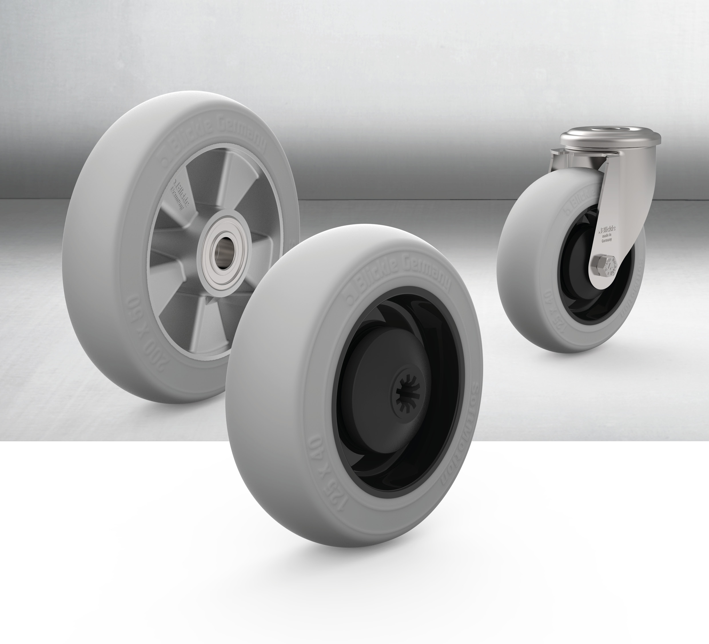 Für Anwen­dun­gen, bei denen hoher Fahrkom­fort und eine her­vor­ra­gende Dämp­fung des Trans­portgutes gefragt sind, hat Blick­le die neuen Serien POES und ALES entwick­elt: Die Räder und Rollen ver­fü­gen mit ihrem hochw­er­ti­gen Weichgum­mi-Lauf­be­lag Soft­Mo­tion über ein beson­ders ruhiges Laufver­hal­ten und fed­ern Uneben­heit­en zuver­läs­sig ab. Damit wird das Rollen zu einem san­ften Gleiten.