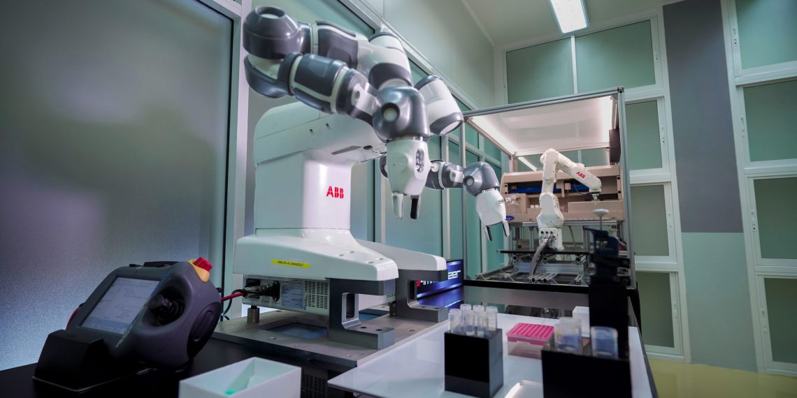 Eindrucksvoll zeigt sich dies bereits in Thailand: Dort soll mit Hilfe des so genannten AI-Immunizer-Systems die Entwicklung eines wirksamen Impfstoffs beschleunigt werden. Die Lösung ist das Ergebnis einer erfolgreichen Zusammenarbeit zwischen der Fakultät für Ingenieurwissenschaften an der Mahidol-Universität und dem Institut für molekulare Biowissenschaften (Institute of Molecular Biosciences). Das Kernelement des AI-Immunizers bilden zwei ABB-Roboter – der IRB 1100 sowie der Zweiarm-Cobot YuMi®. Beide Roboter übernehmen essenzielle Aufgaben im Zusammenhang mit der Prüfung und Entwicklung von Impfstoffen.