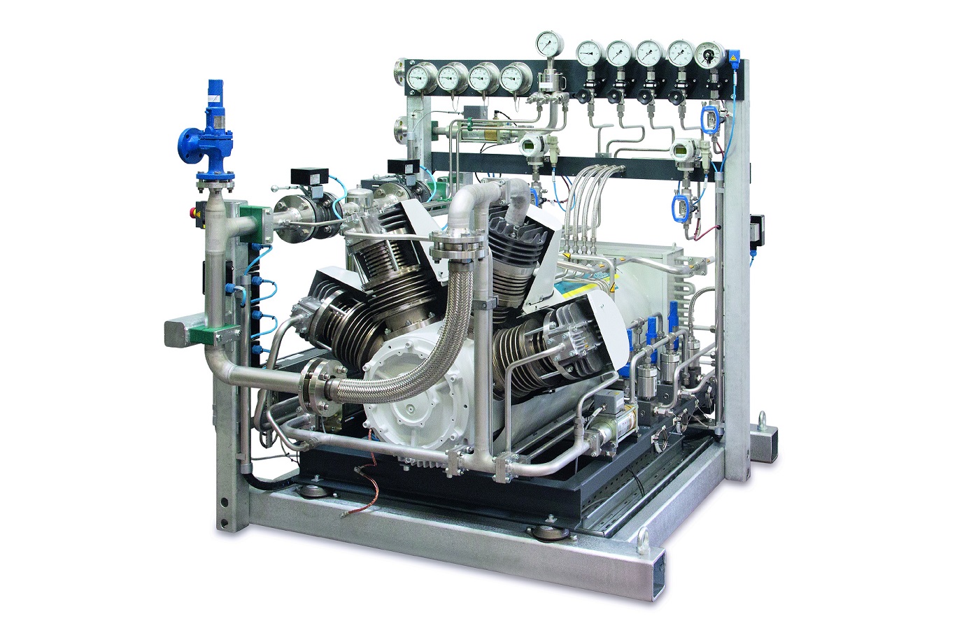 Durch die hermetisch gasdichte Konstruktion erreicht der Haug.Sirius Nanoloc extrem niedrige Leckraten von <0,001 mbar l/s und ermöglicht eine 4‑stufige Verdichtung nahezu aller Gase. Der Verdichter liefert aktuell einen Volumenstrom von maximal 66 Nm³/h und einen Enddruck von bis zu 450 bar(ü) bei einem Eingangsdruck von bis zu 30 bar(ü). Je nach Konfiguration verfügt der Kompressor über eine Motorleistung von 11–30 kW. Der Haug.Sirius Nanoloc ist außerdem ideal für Booster-Anwendungen geeignet, zum Beispiel für Gase wie Helium, Erdgas und Wasserstoff.