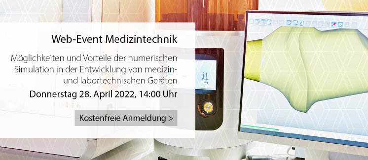 Moderne Medizin- und Labortechnikunternehmen setzen daher schon seit einiger Zeit auf simulationsbasierte Entwicklung und Optimierung ihrer Produkte. In dem kostenfreien Online-Event am 28. April 2022 von 14:00 Uhr bis 16:00 Uhr werden die vielfältigen Einsatzmöglichkeiten moderner Simulationsprogramme für den Bereich medizin- und labortechnischer Anwendungen anhand verschiedener Praxisbeispiele vorgestellt.