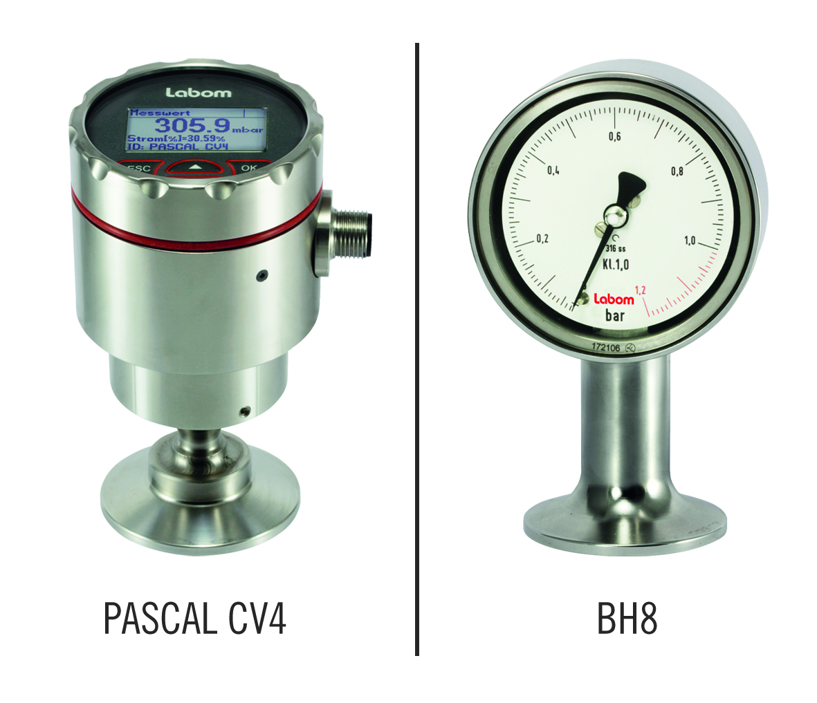 Die CIP und SIP- geeigneten Anschlüsse ermöglichen eine rückstandslose Reinigung durch ihr totraumfreies Design und ihre guten Oberflächeneigenschaften. Neben dem PASCAL CV4 bietet Labom ein breites Portfolio an weiteren für die Pharmaindustrie geeigneten Temperatur- und Druckmessgeräten mit Edelstahlgehäusen. So z.B. das komplett autoklavierbare, mechanische Druckmessgerät BH8 oder das Widerstandsthermometer GA2610 mit Clamp-on-Technologie, bei dem das Messgerät gar nicht mit dem Prozess in Berührung kommt – mehr Hygiene geht nicht.