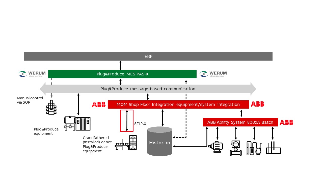 Dazu hat ABB gemeinsam mit Werum ein nachrichtenbasiertes Kommunikationssystem entwickelt, über das MES und Produktionsmaschinen miteinander kommunizieren, Daten wie Qualität, Sollwert und Verbrauch austauschen und regelmäßig synchronisiert werden.