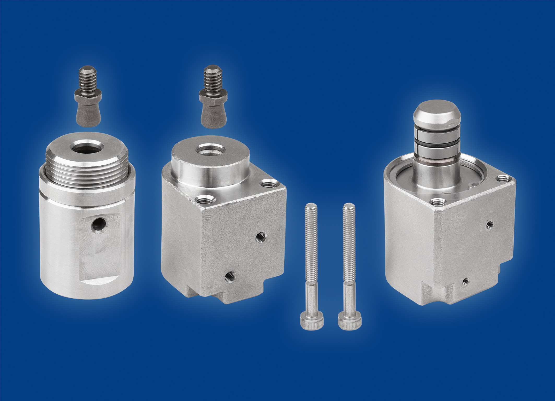 Verfügbar sind zwei unterschiedliche Positionieraufnahmen (einfach- beziehungsweise doppeltwirkend) für das Spannen mit Bolzen. Sie gewährleisten eine Spannkraft von 30 beziehungsweise 40 Newton (bei 0,5 Megapascal). Die Flanschausführung verfügt über eine Sicherheitsfunktion – hier greift bei Druckluftabfall eine integrierte Feder. Das Spannen über Aufnahmebuchsen ist mit Positionierzylindern möglich. Die beiden erhältlichen Varianten unterscheiden sich durch das Spannprinzip: Variante 1 ist im Ausgangszustand durch eine Feder gespannt. Die Spannkraft beträgt hierbei 50 Newton. Durch Druckluft wird der Positionierzylinder entspannt. Variante 2 ist im Ausgangszustand entspannt. Durch Druckluft erzielt der Positionierzylinder eine Spannkraft von 150 Newton (bei 0,5 Megapascal). Abgerundet wird das Sortiment durch Zentrierspanner für die direkte Werkstückspannung. Sie erlauben Spanndurchmesser von 16–20 Millimeter und eine Haltekraft von 77 Newton (bei 0,5 Megapascal).