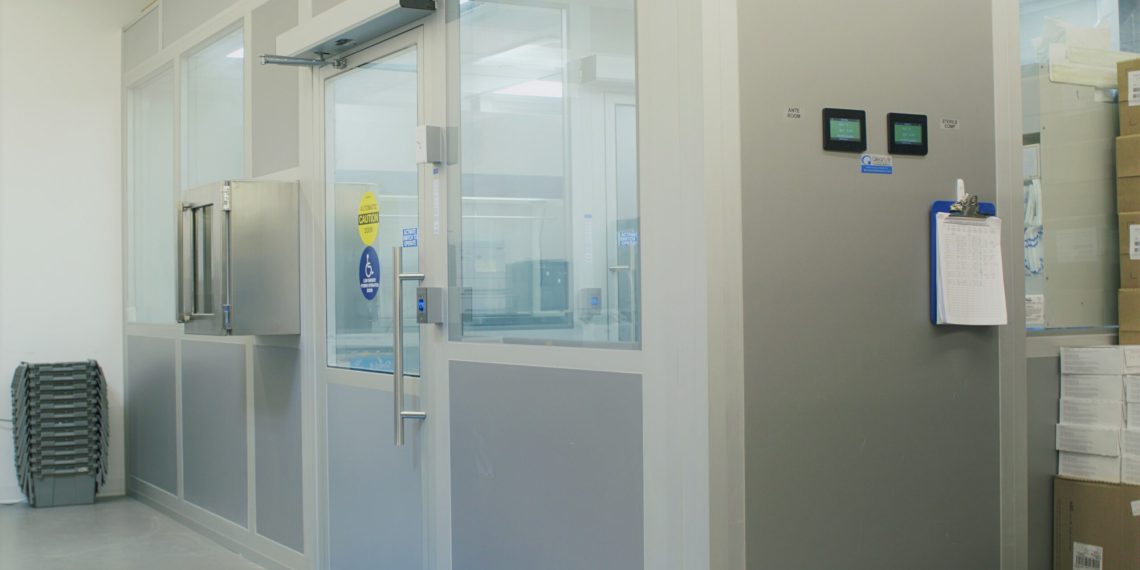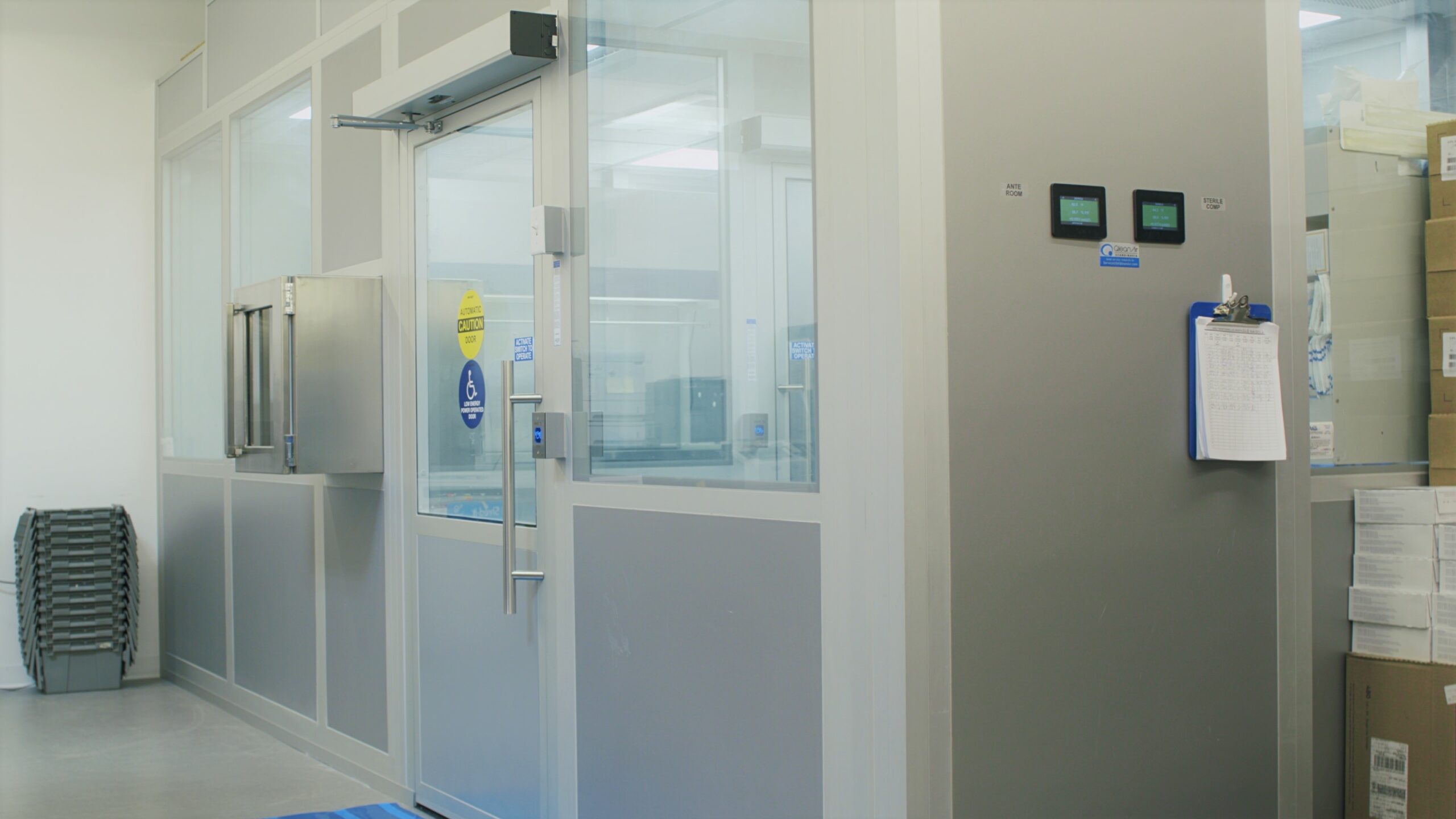 Der USP 797-Reinraum besteht aus einem Vorraum und einem Raum für sterile Arzneimittelherstellung, klassifiziert nach ISO 8 bzw. ISO 7. QleanAir hat den Raum entworfen, hergestellt und montiert. Zudem ist QleanAir für die Betreuung des Betriebs und die Wartung zuständig.