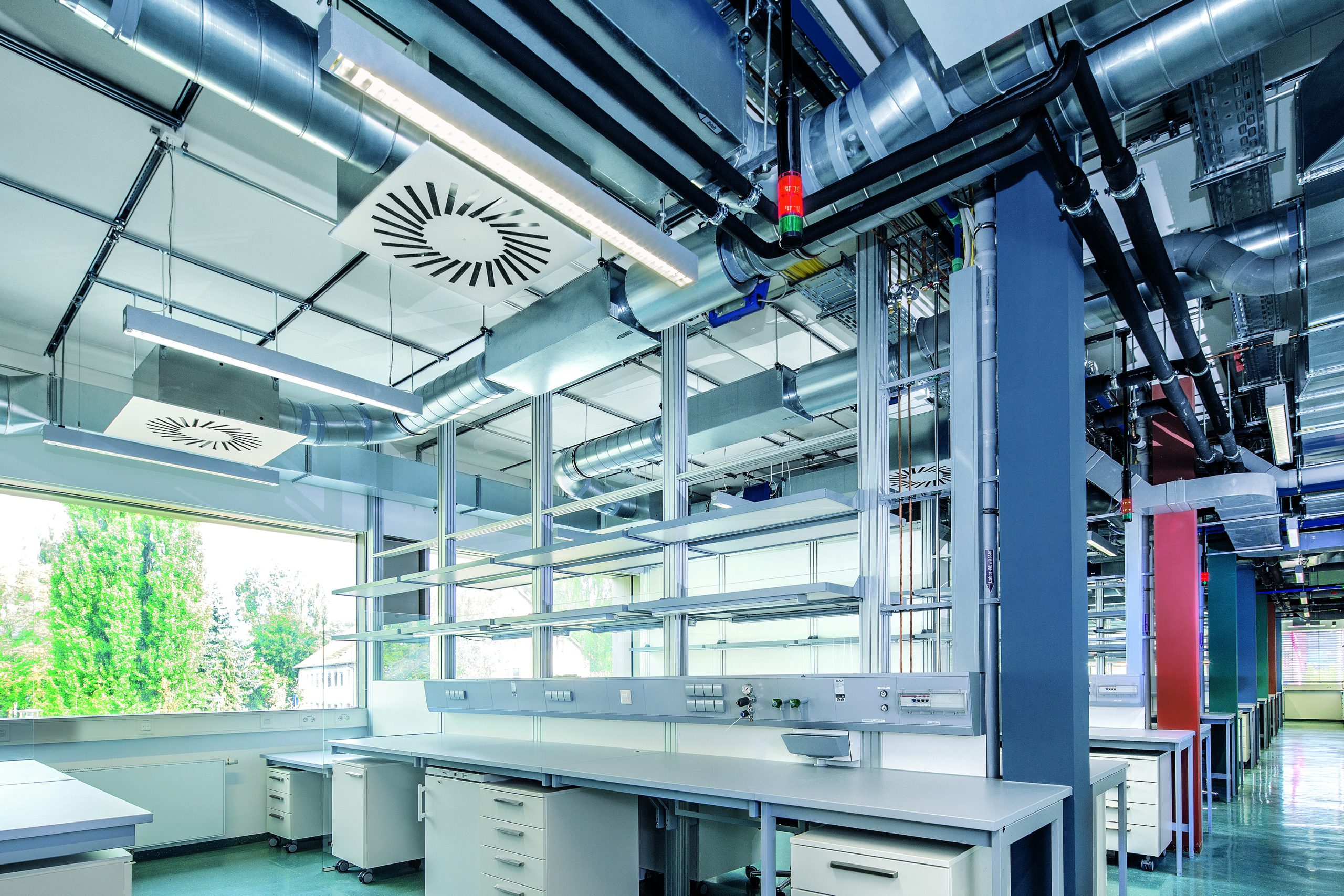 „Um Laborpersonal und Umwelt zu schützen, ist gemäß EN 14175 unter anderem sicherzustellen, dass Gase, Dämpfe oder Stäube aus dem Inneren eines Digestoriums nicht in gefährlicher Konzentration ins Labor gelangen können“, so Matthias Olders, Produktmanager Labcontrol bei Trox. Gewährleistet wird dies über eine speziell entwickelte raumlufttechnische Regelung: Neben der Versorgung mit ausreichend Frischluft unter Einhaltung der Behaglichkeitskriterien nach EN 15251 und der Sicherstellung des Ab- und Zuluftbedarfs von Laboreinrichtungen sowie Geräten nach DIN 1946 Teil 7 müssen auch freigesetzte Gefahrstoffe im Laborabzug und im Labor selbst verdünnt sowie abgeführt werden. Um diese Aufgabe zu erfüllen sowie Luftaufbereitung und ‑transport gleichzeitig möglichst energieeffizient zu gestalten, werden zunehmend intelligente, vernetzte Luftmanagement-Lösungen wie das Easylab-System eingesetzt. Das System erfasst alle relevanten Daten, wertet sie aus und sorgt für die Regelung nach vorgegebenen Parametern.