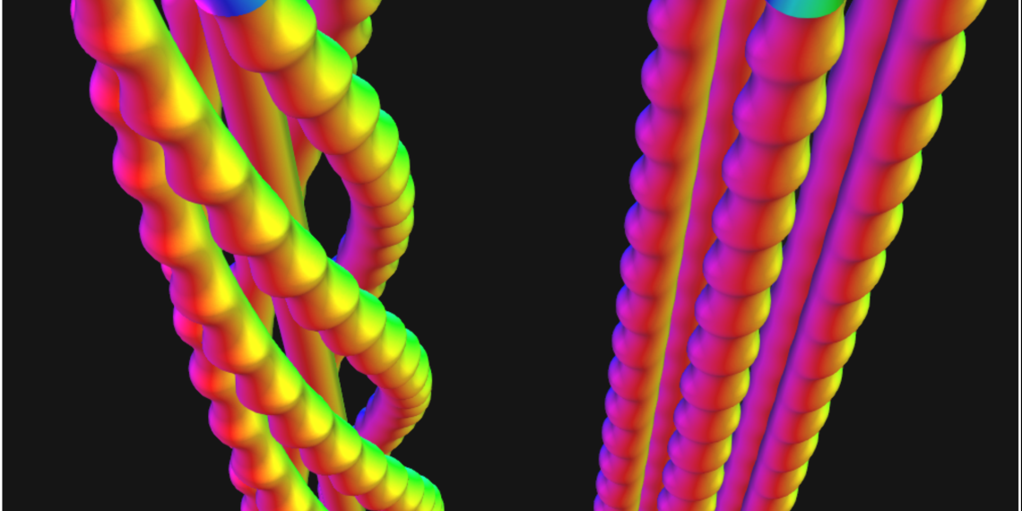 Die Nanoschnüre bestehen aus jeweils mehreren Skyrmionen, die mehr oder weniger stark miteinander verdrillt sind, wie die Stränge eines Taus. Skyrmionen wiederum bestehen aus magnetischen Momenten, die in unterschiedliche Richtungen zeigen und zusammen die Form eines langgezogenen winzigen Wirbels einnehmen. Jeder einzelne Skyrmionstrang hat weniger als einen Mikrometer Durchmesser. Die Länge der Magnetstrukturen wird nur durch die Dicke der Proben begrenzt; sie reichen von einer Oberfläche der Proben bis zur gegenüberliegenden.