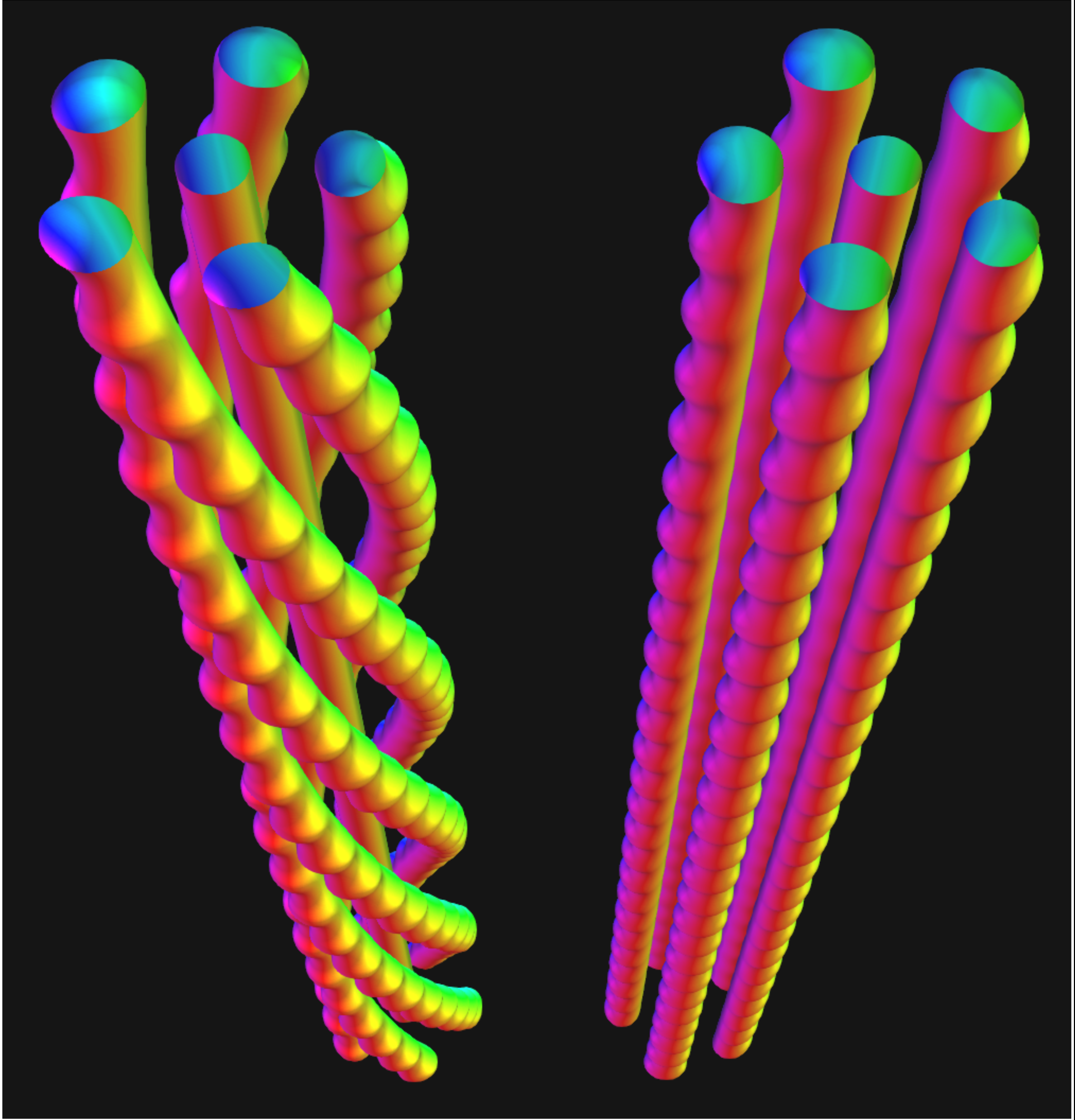 Die Nanoschnüre bestehen aus jeweils mehreren Skyrmionen, die mehr oder weniger stark miteinander verdrillt sind, wie die Stränge eines Taus. Skyrmionen wiederum bestehen aus magnetischen Momenten, die in unterschiedliche Richtungen zeigen und zusammen die Form eines langgezogenen winzigen Wirbels einnehmen. Jeder einzelne Skyrmionstrang hat weniger als einen Mikrometer Durchmesser. Die Länge der Magnetstrukturen wird nur durch die Dicke der Proben begrenzt; sie reichen von einer Oberfläche der Proben bis zur gegenüberliegenden.