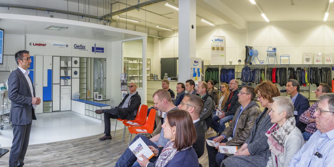 Auch in diesem Jahr hießen die Pharmalogistik-Experten von Pharmaserv Logistics wieder interessierte Besucher aus der Healthcare- und Logistikbranche in Marburg willkommen. Diesmal im kürzlich eröffneten Showroom, in dem sich auch ein offen gestalteter Trainings-Reinraum für Seminarzwecke befindet. Bei einer kurzen Unternehmensvorstellung wurden den Teilnehmern die Produktbereiche temperaturgeführte Exporte, systemintegrierte Produktionsversorgung sowie der Großhandel mit Labor- und Produktionsverbrauchsartikeln über den Pharmaserv-Shop erläutert.