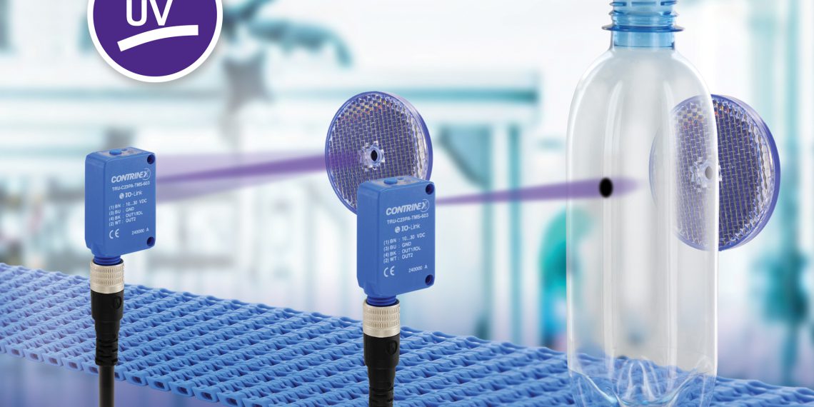 Der neue photoelektrische Sensor TRU-C23 mit IO-Link aus dem Hause Contrinex arbeitet deshalb als bewährtes Reflektor-System. Dank eines patentierten Erfassungsprinzips bietet der Sensor eine außergewöhnlich hohe Detektionssicherheit, um auch sehr dünne, transparente Objekte zuverlässig zu erkennen. Er nutzt eine im ultravioletten Spektrum arbeitende Lichtquelle, deren Strahlen durch klares Glas oder Kunststoff absorbiert werden.