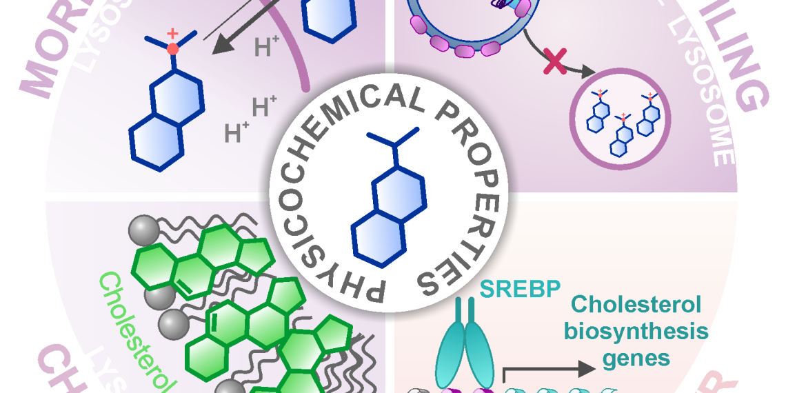 Doch wie können so viele Substanzen, die unterschiedlichste Zielmoleküle im Körper angreifen, die gleiche Wirkung auslösen? Die Forschenden konnten zeigen, dass die meisten Substanzen des Clusters im Lysosom akkumulieren, einem Organell, in dem das Cholesterin für seine weitere Funktion in der Zelle zwischengelagert wird. Das Lysosom weist einen niedrigeren pH-Wert als der Rest der Zelle auf, und dieser ist von entscheidender Bedeutung für das Funktionieren der lysosomalen Verdauungsenzyme, die fremde und eigene Biomoleküle verarbeiten.