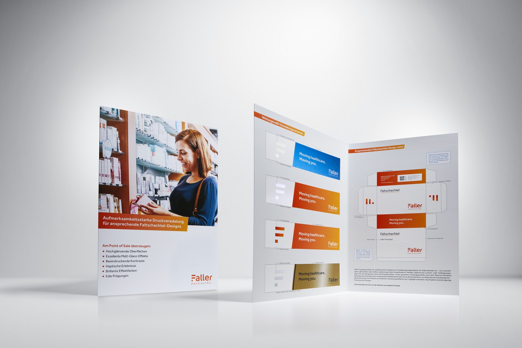 Der Spezialist für pharmazeutische Verpackungen Faller Packaging bietet seinen Kunden ein breites Portfolio von Veredelungstechniken für Faltschachteln an. Damit lassen sich ganz unterschiedliche optische und haptische Effekte erzeugen, die Pharma- und Healthcare-Herstellern dabei helfen, ihre Produkte vom Wettbewerb abzuheben und ihre Marke entsprechend zu positionieren. Dazu zählen unter anderem hochglänzende Oberflächen mit Dispersions- oder UV-Lackierungen, Matt-Glanz-Effekte, besondere Kontraste, brillante Effektfarben oder Prägungen. Auch für eine längere Haltbarkeit der Verpackungen und eine verbesserte Widerstandsfähigkeit gegen verschiedene äußere Einflüsse können die Veredelungen sorgen.