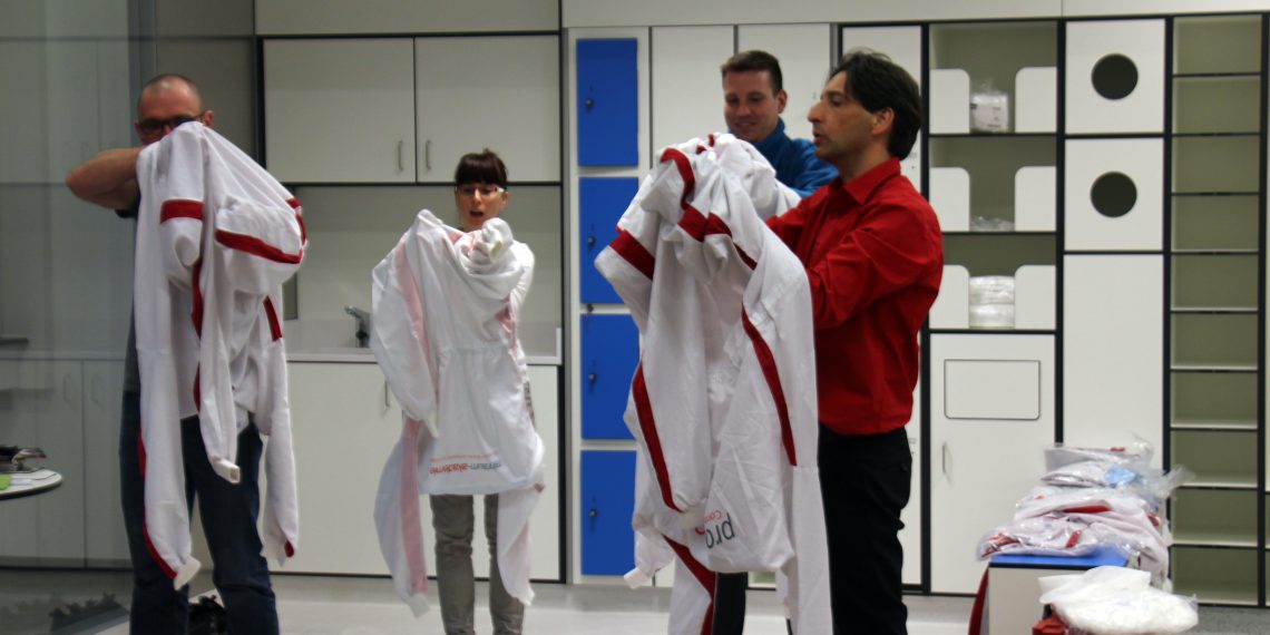 Impressionen des Seminars „Verhalten im Reinraum“ am Standort Behringwerke Marburg.