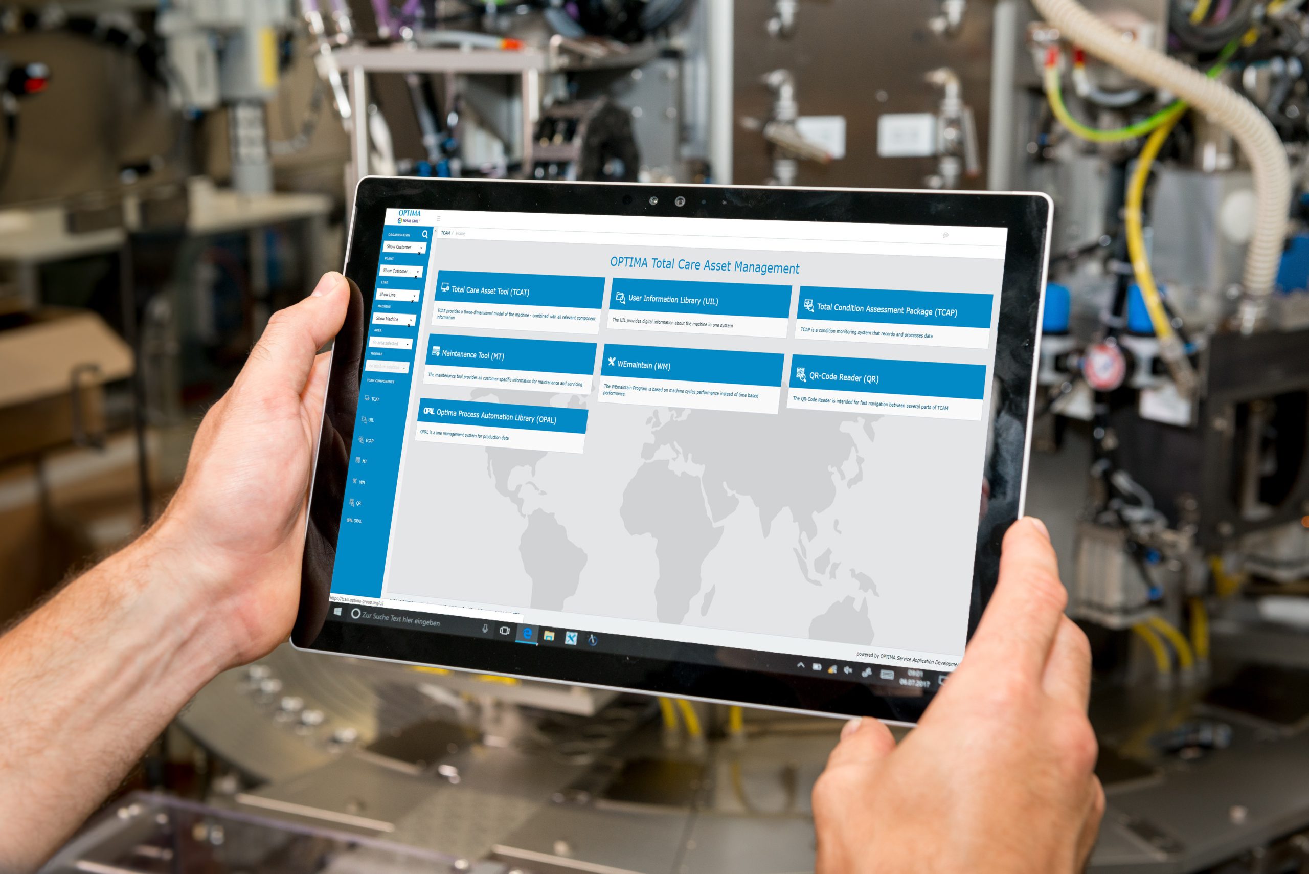 Der Lebenszyklus einer Maschine ist Basis des Total Care Konzepts von Optima, das mit der Beratungsphase beginnt und bis hin zum Retrofit von Anlagen reicht. Neben Basis-Serviceleistungen – beispielsweise einem Einbringkonzept für Maschinen in die Produktionsumgebung – umfasst Total Care auch Smart Services. Hierzu zählen etwa komplexe Simulationen während der Projektierung sowie der Einsatz von VR-Technologien zur Wartungs- und Reparaturunterstützung. Mit dem Linienmanagement-System OPAL bietet Optima einen weiteren Baustein für langfristig hocheffiziente Prozesse. Die herstellerübergreifende Industrie 4.0‑Anwendung generiert und analysiert umfassend Produktionsdaten, um Produktivitätspotenziale systematisch zu erschließen.