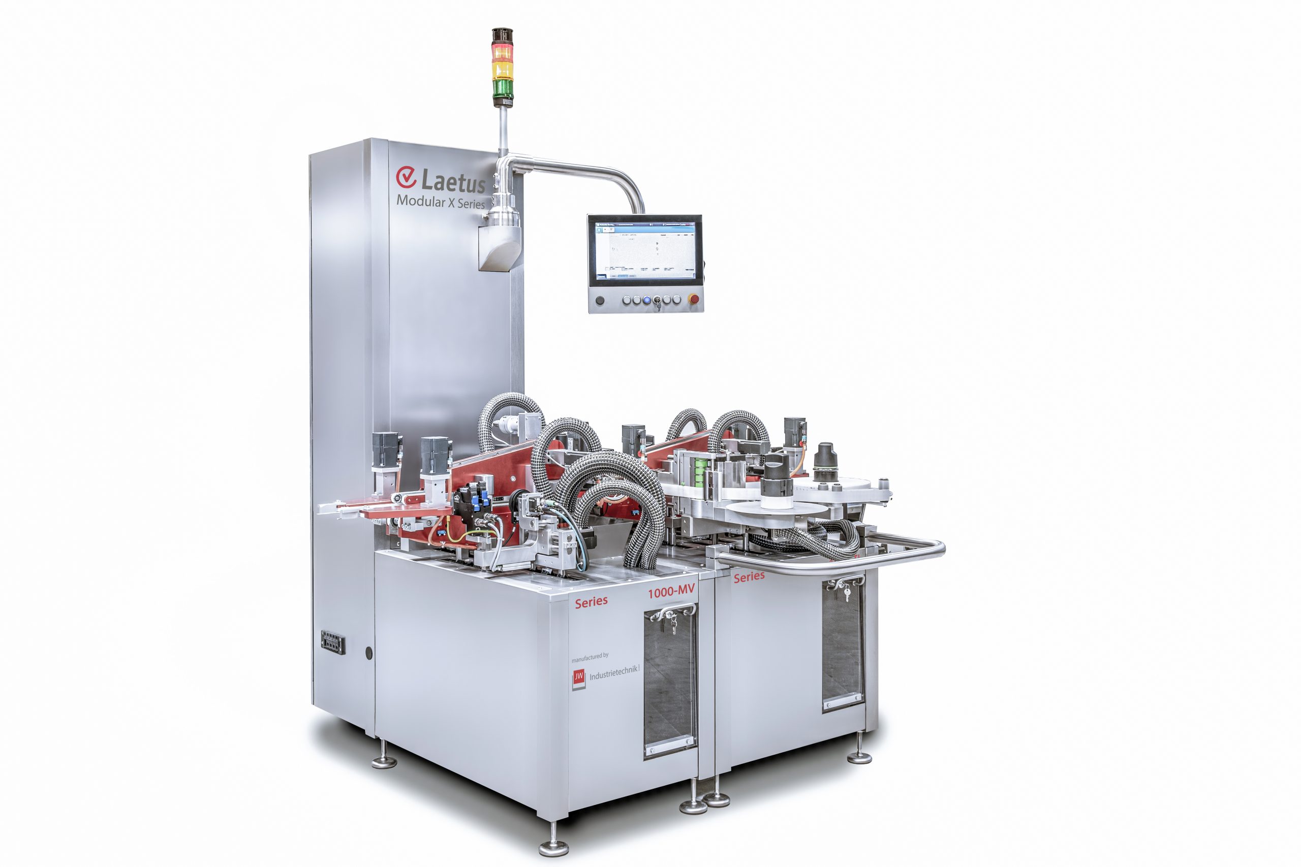 For­matwech­sel kön­nen vol­lau­toma­tisch und damit repro­duzier­bar in weniger als 60 Sekun­den durchge­führt wer­den. So sinken Umrüstzeit­en sowie die Gefahr von Bedi­en­fehlern auf ein Min­i­mum, während Unternehmen bei kon­stant hohen Pro­duk­tion­sleis­tun­gen jed­erzeit schnell auf verän­derte Mark­tansprüche reagieren kön­nen. Das option­al erhältliche Tam­per Evi­dent Mod­ul Mod­u­lar X 1000-TL bringt zudem pro Minute bis zu 400 Fälschungss­chutzetiket­ten auf zwei Seit­en an. Die App­lika­tion der Etiket­ten an vier möglichen Posi­tio­nen (vordere und hin­tere Öff­nung, jew­eils oben oder unten) erfol­gt auf 1 Mil­lime­ter genau und wird eben­falls automa­tisch kon­trol­liert. Ein elek­tro­n­isch ges­teuert­er Hochgeschwindigkeit­sauswurf sorgt für die zuver­läs­sige Auss­chleusung fehler­haft gekennze­ich­neter Produkte.