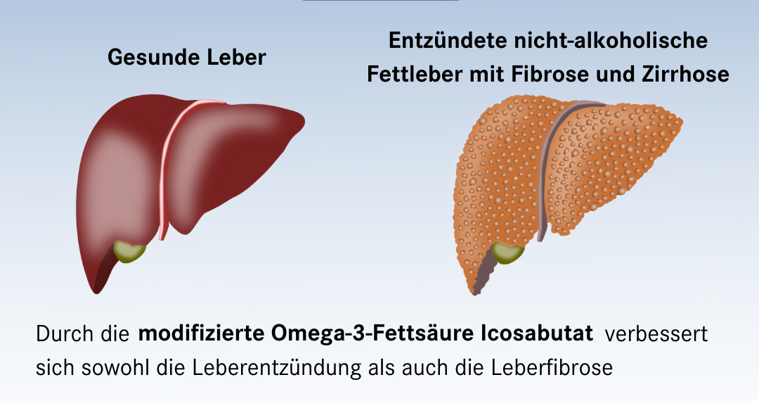 „Wir haben gemein­sam mit der Fir­ma North­sea Ther­a­peu­tics ein poten­tielles Medika­ment gegen die NASH entwick­elt und mit Hin­blick auf seine Wirk­samkeit aus­giebig in vit­ro und in vivo getestet: die struk­turell-mod­i­fizierte Omega-3-Fettsäure Icos­abu­tat. Dabei han­delt es sich um eine völ­lig neue Sub­stanzk­lasse. Durch Icos­abu­tat verbesserten sich sowohl die Leber­entzün­dung als auch die Leber­fi­brose. In ein­er ersten Studie mit Patien­ten, die ein hohes Risiko hat­ten, nor­mal­isierte eine tägliche Kapsel unseres Wirk­stoffs Icos­abu­tat erhöhte Blutwerte der Leber­entzün­dung und der Leber­fi­brose sehr überzeu­gend und schnell. Basierend auf diesen vielver­sprechen­den Ergeb­nis­sen kon­nte in den USA eine klin­is­che Phase-2b-Studie (‚ICONA‘) ini­ti­iert wer­den, in der Betrof­fene mit schw­er­er NASH und Leber­fi­brose über einen Zeitraum von einem Jahr mit Icos­abu­tat behan­delt wer­den. Hier wird der Ther­a­pieer­folg zu Beginn und am Ende auch per Leber­biop­sie beurteilt.“